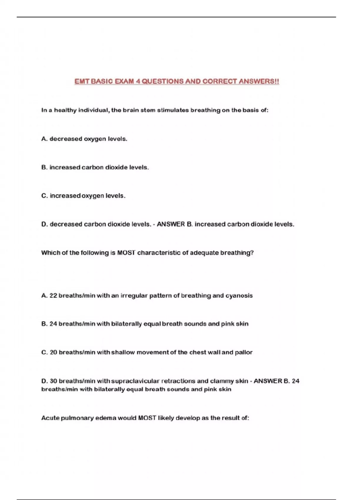 EMT BASIC EXAM 4 QUESTIONS AND CORRECT ANSWERS!!...