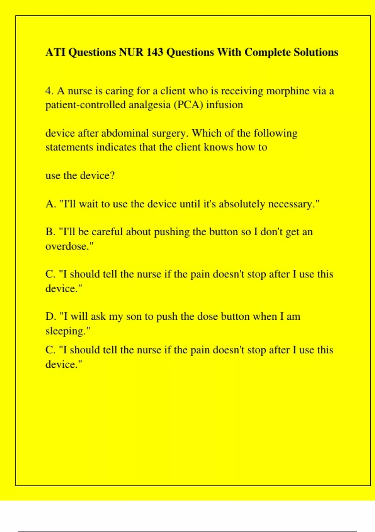 C. "I should tell the nurse if the pain doesn't stop after I use this