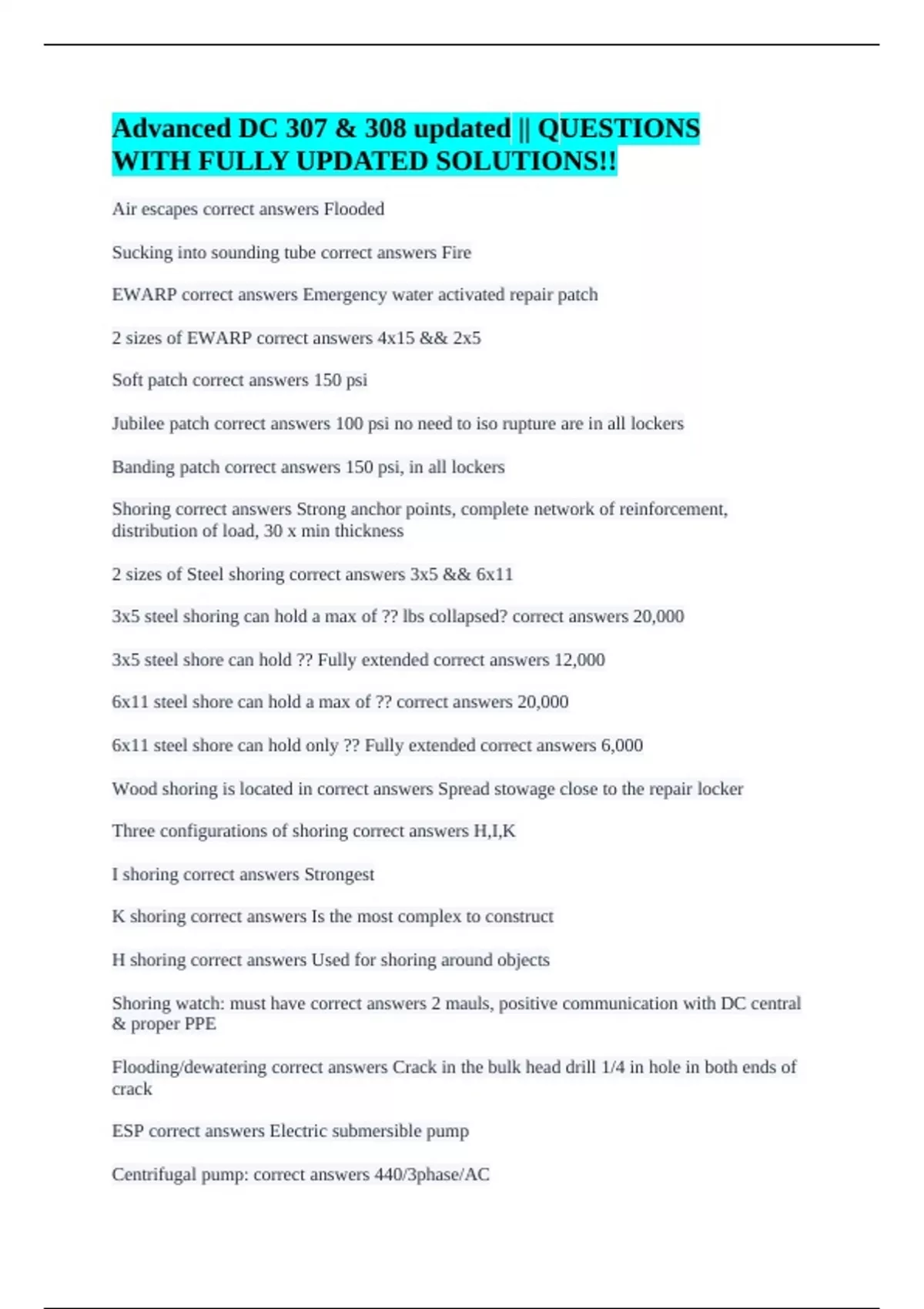 Flooding/dewatering correct answers Crack in the bulk head drill 1/4 in hole in both ends of