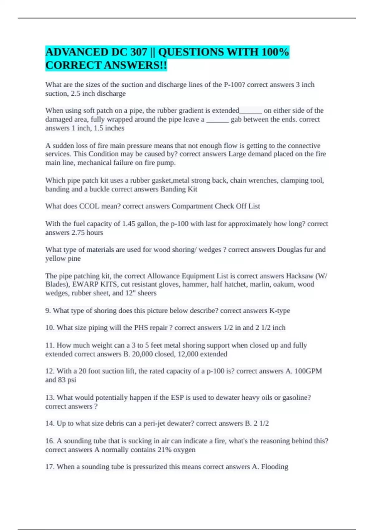 ADVANCED DC 307 || QUESTIONS WITH 100%