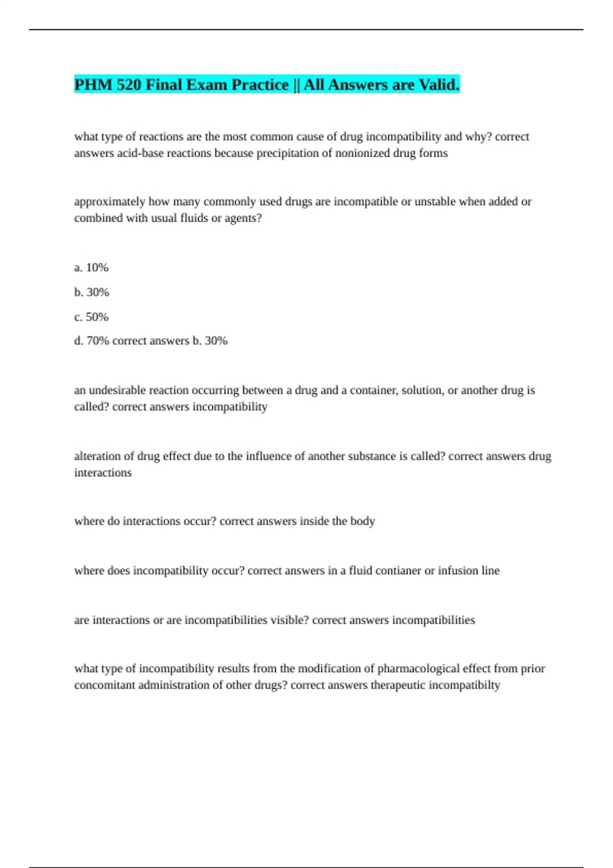 PHM 520 Final Exam Practice || All Answers are Valid.