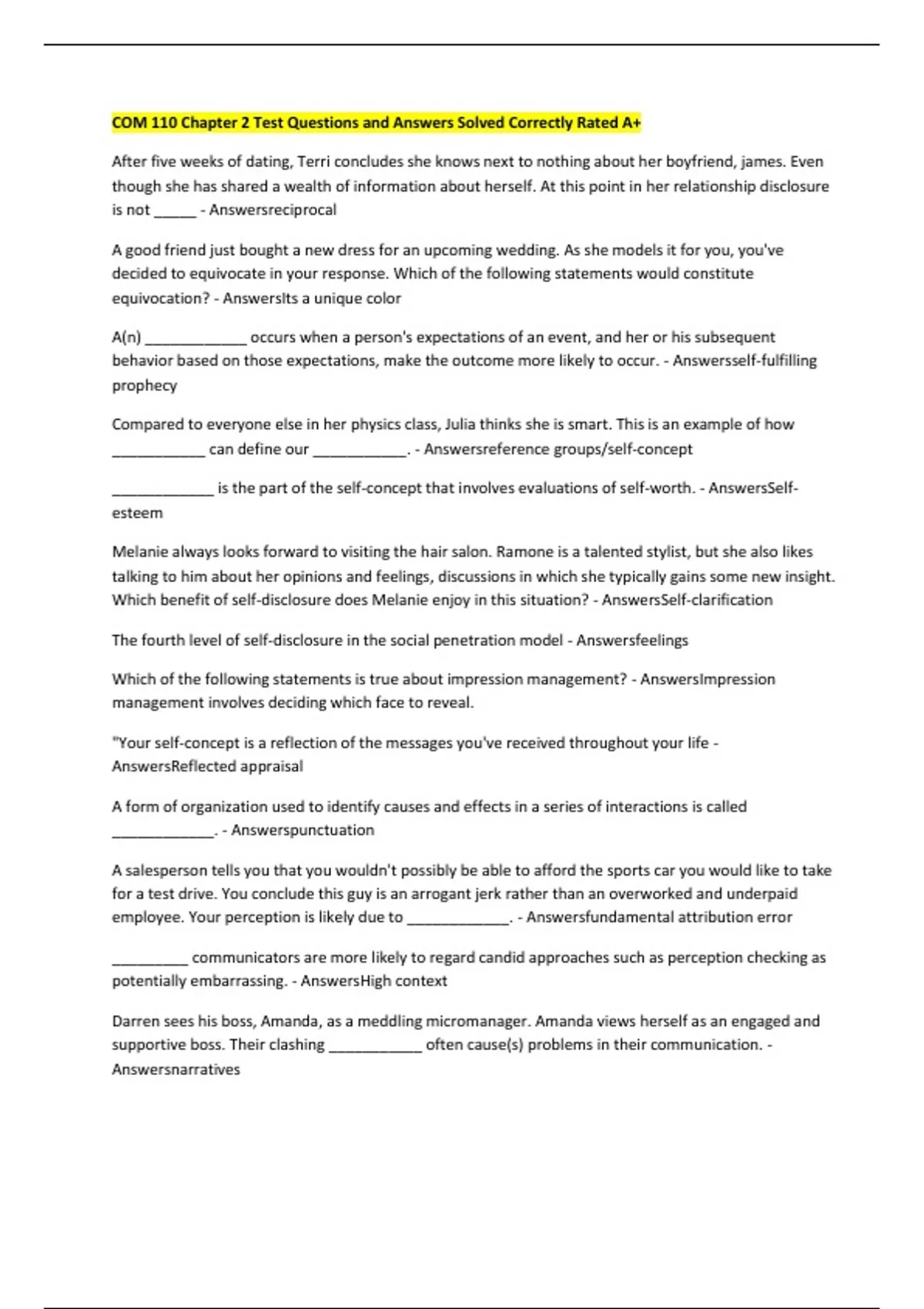 Which benefit of self-disclosure does Melanie enjoy in this situation? - AnswersSelf-clarification