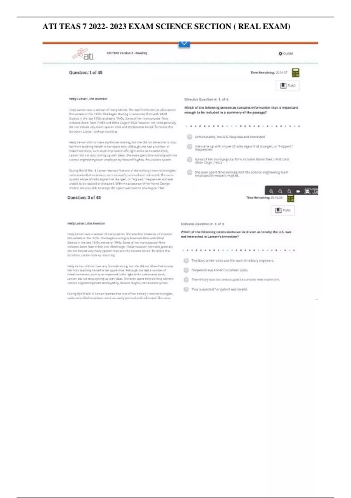 ATI TEAS 7 2022- 2023 EXAM SCIENCE SECTION ( REAL EXAM)