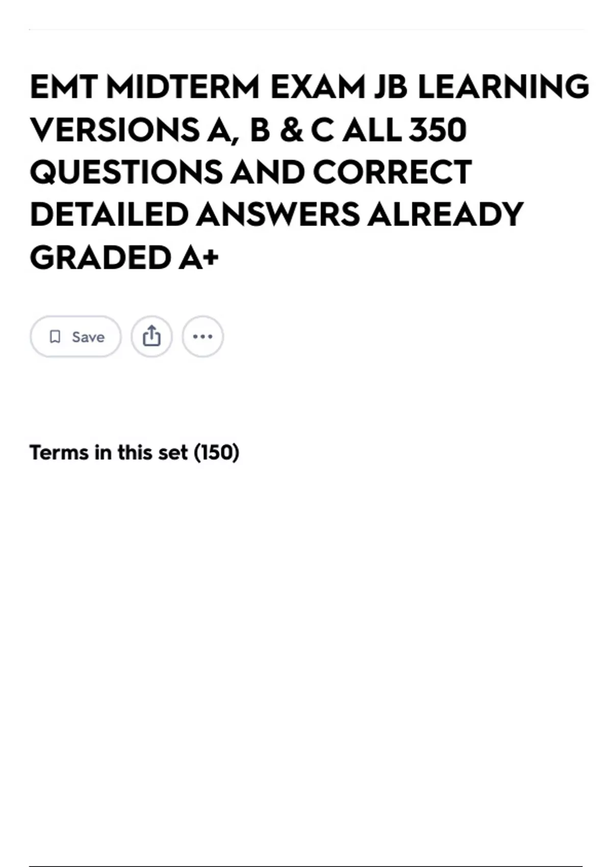 EMT MIDTERM EXAM JB LEARNING VERSIONS A, B & C ALL 350 QUESTIONS AND CORRECT DETAILED ANSWERS ALREADY GRADED A+