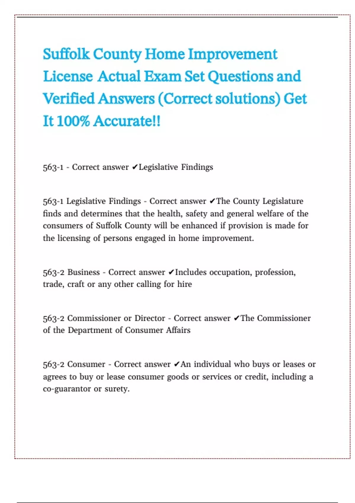 Suffolk County Home Improvement License Actual Exam Set Questions And Verified Answers (Correct solutions) Get It 100- Accurate!!