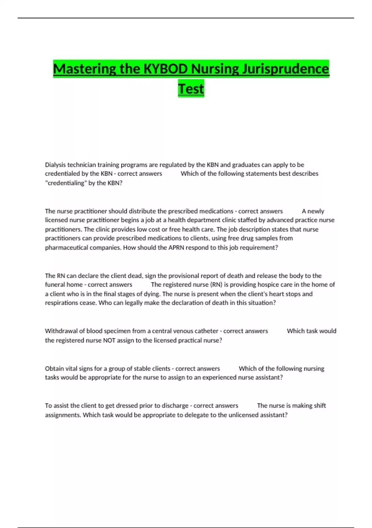 credentialed by the KBN - correct answers ✔️✔️Which of the following statements best describes