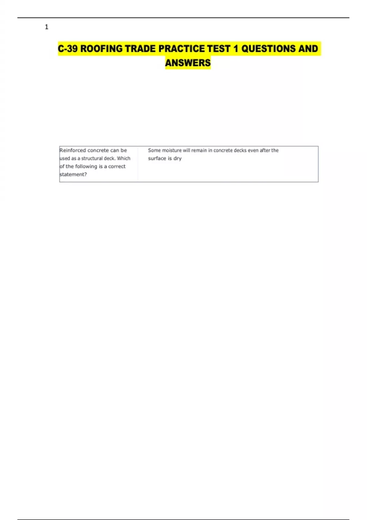 C-39 ROOFING TRADE PRACTICE TEST 1 QUESTIONS AND