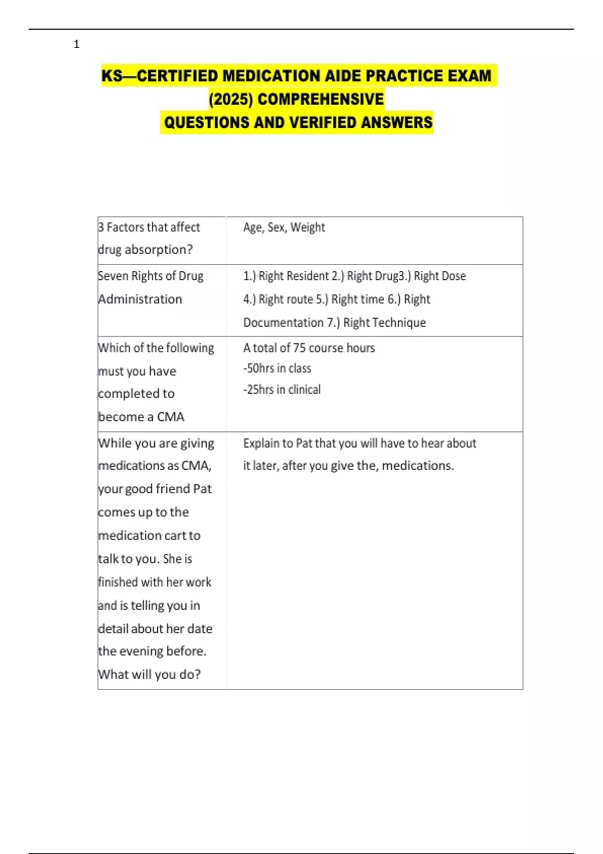 KS—CERTIFIED MEDICATION AIDE PRACTICE EXAM