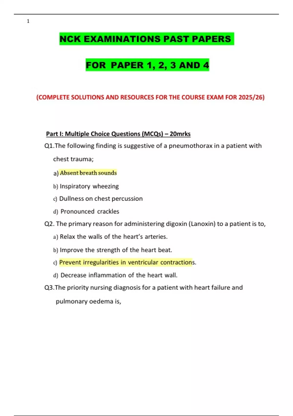 (COMPLETE SOLUTIONS AND RESOURCES FOR THE COURSE EXAM FOR 2025/26)