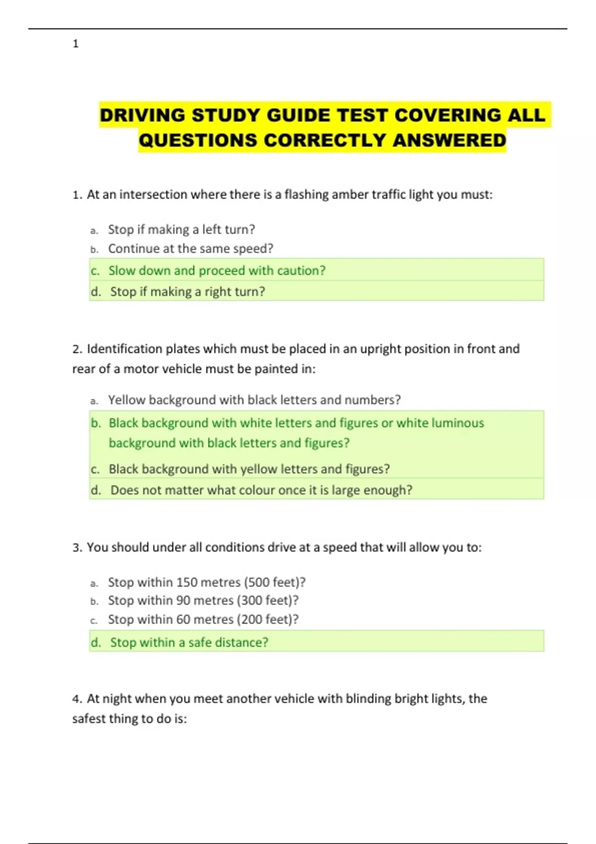 DRIVING STUDY GUIDE TEST COVERING ALL