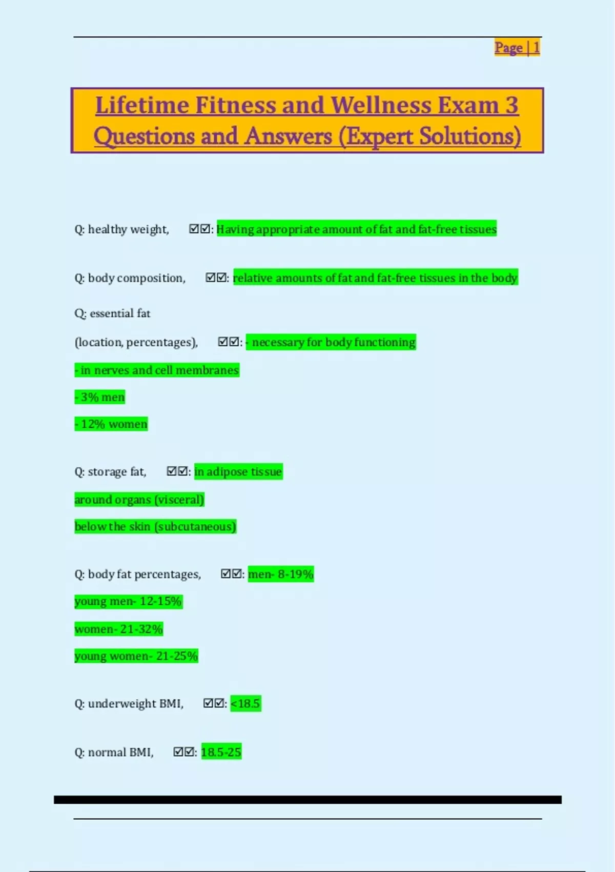 Lifetime Fitness and Wellness Exam 3 Questions and Answers (Expert Solutions)
