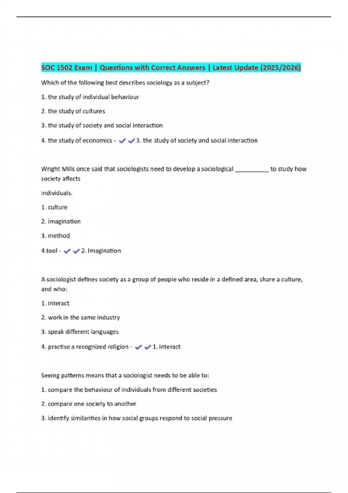 soc 1502 exam questions with correct answers l