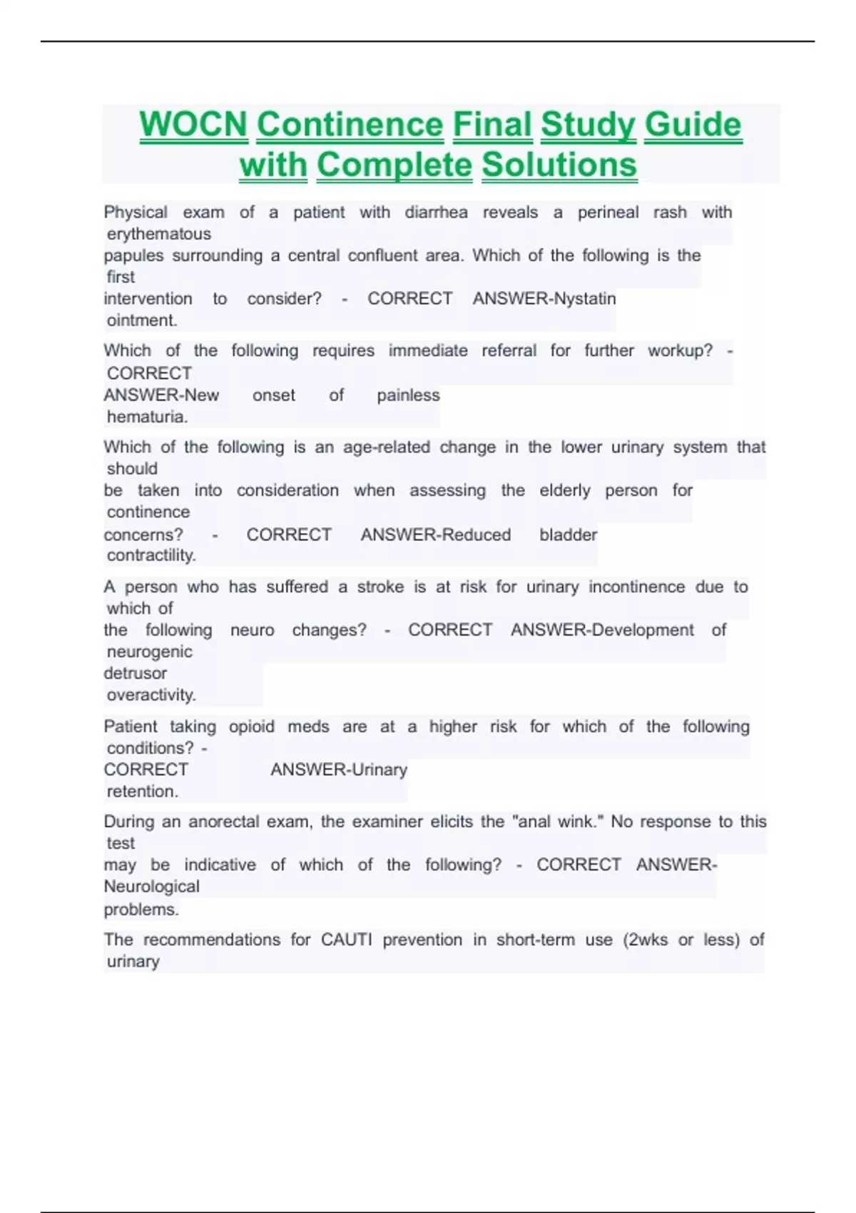 WOCN Continence Final Study Guide with Complete Solutions WOCN Continence Final Study Guide with Complete Solutions WOCN Continence Final Study Guide with Complete Solutions WOCN Continence Final Study Guide with Complete Solutions WOCN Continence Final Study Guide with Complete Solutions WOCN Continence Final Study Guide with Complete Solutions WOCN Continence Final Study Guide with Complete Solutions