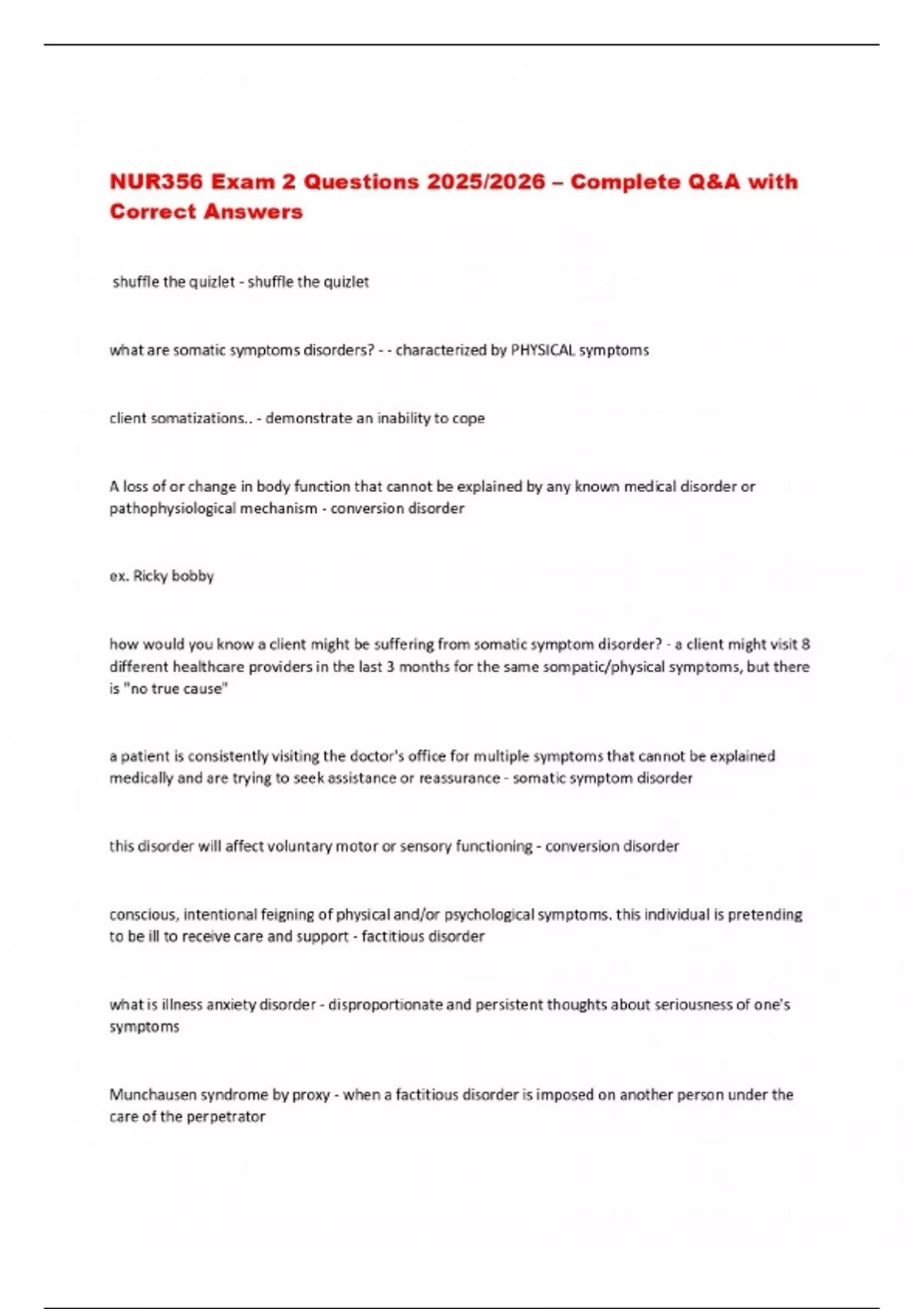 NUR356 Exam 2 Questions 2025/2026 – Complete Q&A with Correct Answers