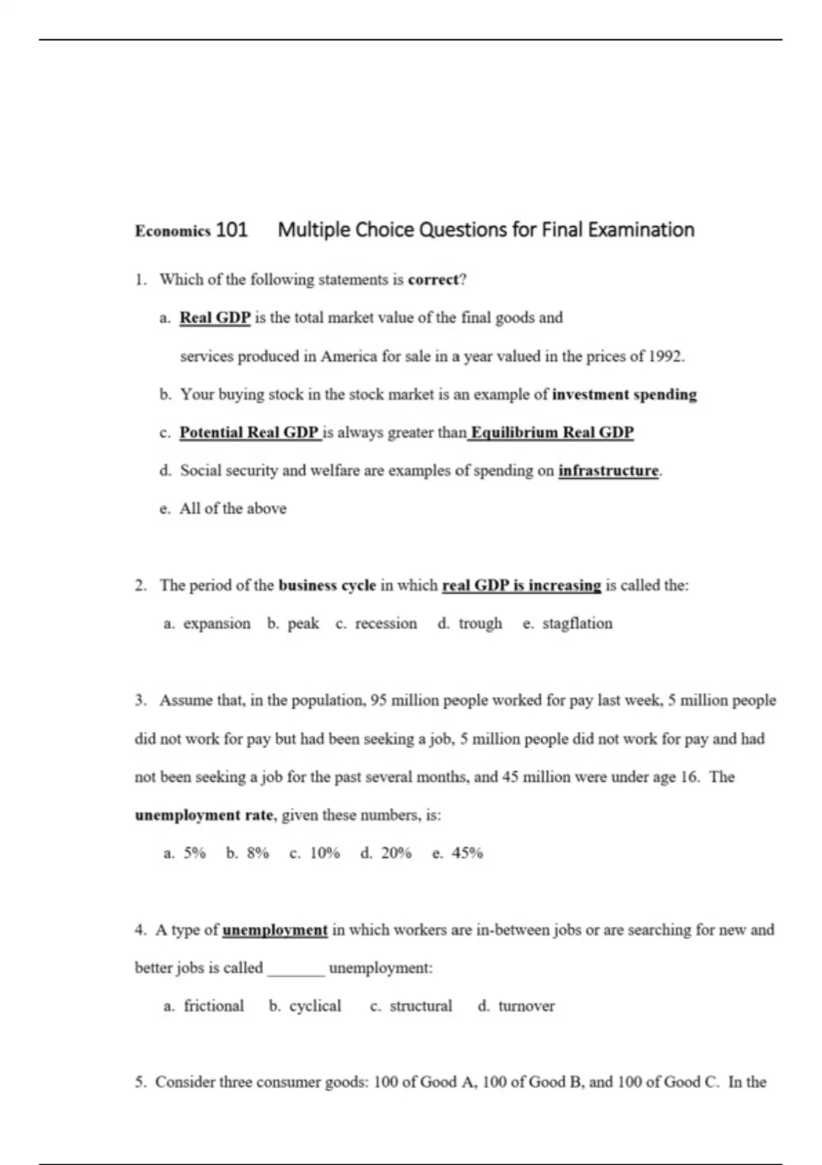 MULTIPLE CHOICE QUESTIONS FOR FINAL EXAMINATION