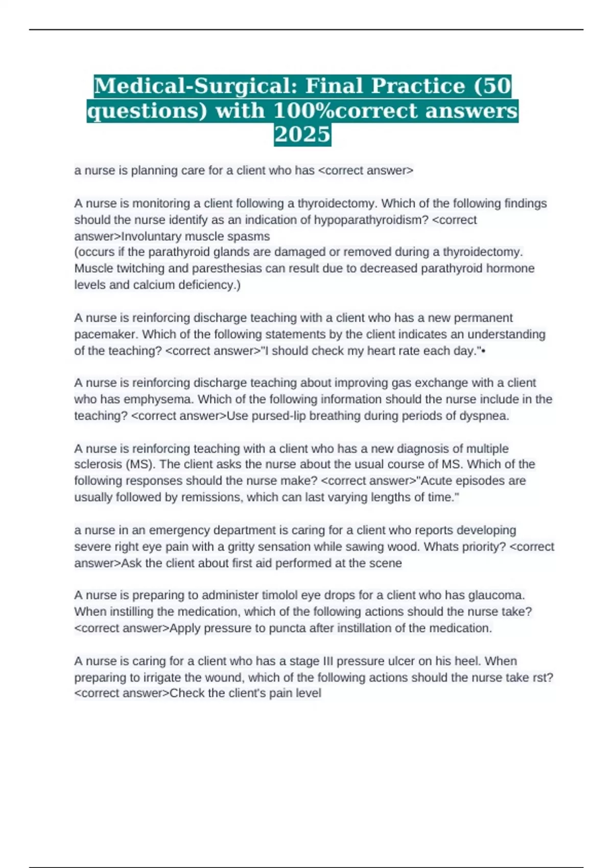 Medical-Surgical: Final Practice (50