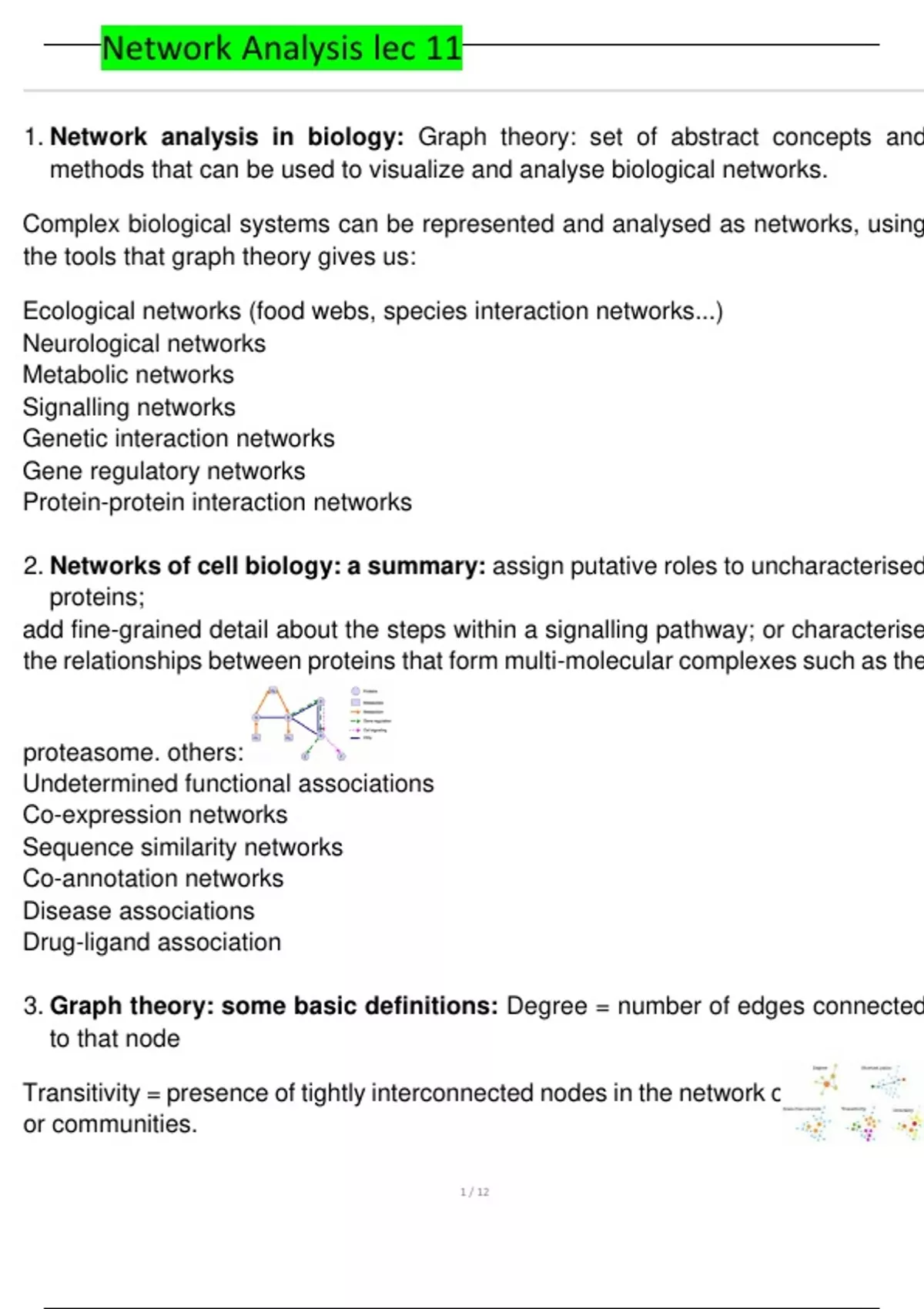 1. Network analysis in biology: Graph theory: set of abstract concepts and