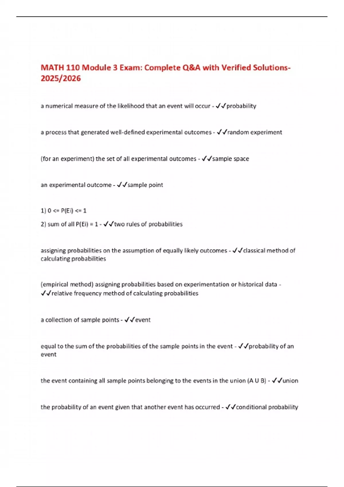MATH 110 Module 3 Exam: Complete Q&A with Verified Solutions 2025/2026