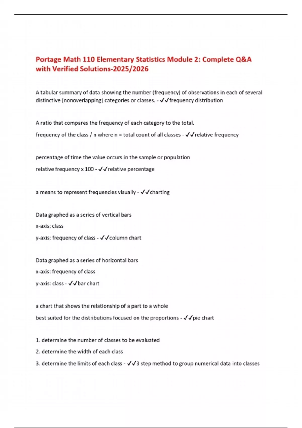 Portage Math 110 Elementary Statistics Module 2: Complete Q&A with Verified Solutions-2025/2026