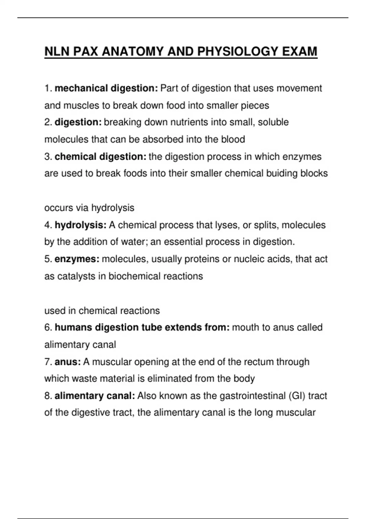 NLN PAX ANATOMY AND PHYSIOLOGY EXAM