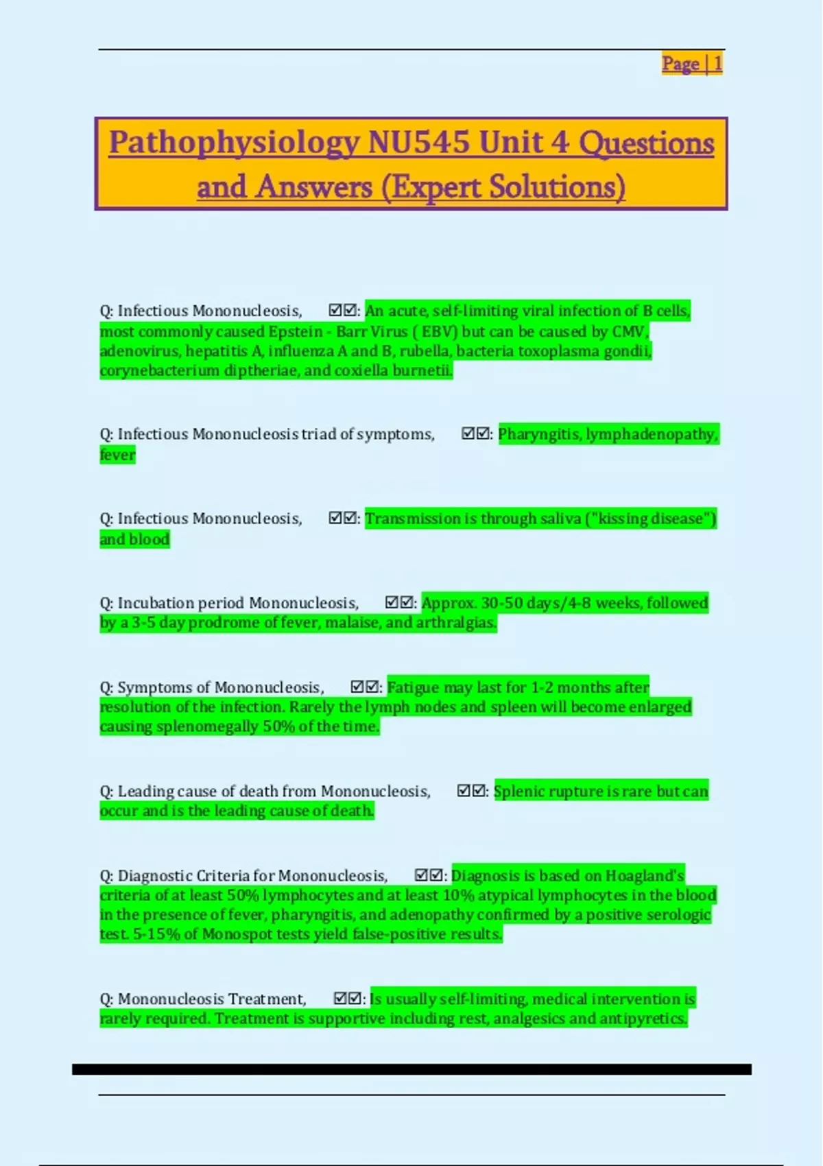 Pathophysiology NU545 Unit 4 Questions and Answers (Expert Solutions)