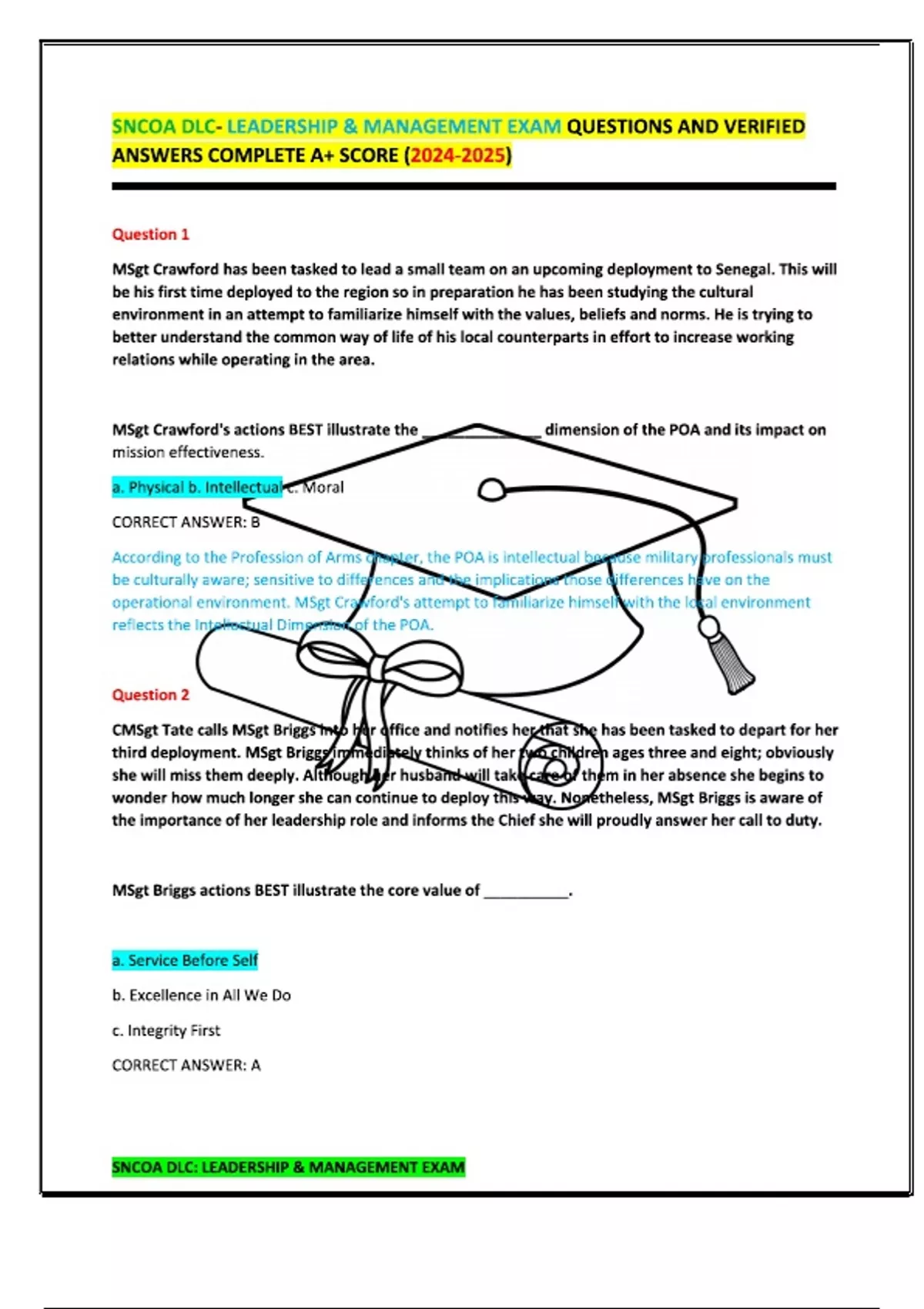 sncoa dlc leadership management exam questions and