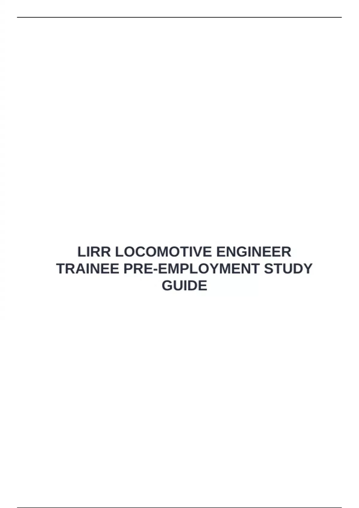 LIRR LOCOMOTIVE ENGINEER TRAINEE PRE-EMPLOYMENT STUDY GUIDE