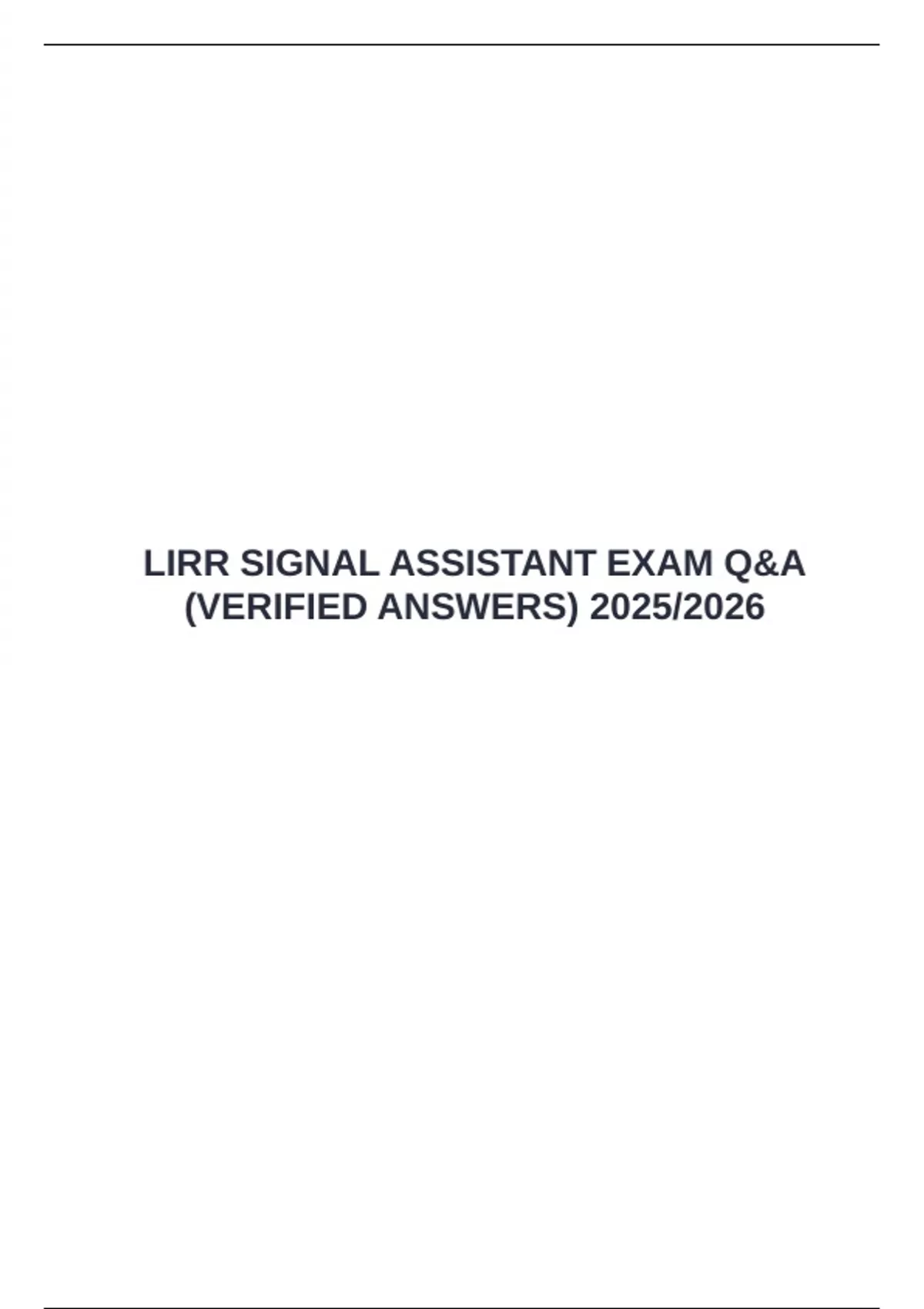 LIRR SIGNAL ASSISTANT EXAM Q&A (VERIFIED ANSWERS) 2025/2026