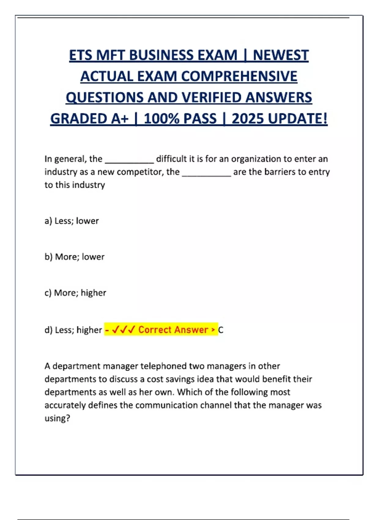 ETS MFT BUSINESS EXAM 2025/2026 LATEST WITH 200+ ACTUAL EXAM QUESTIONS AND CORRECT ANSWERS/ ETS MFT BUSINESS EXAM 2025 NEWEST!