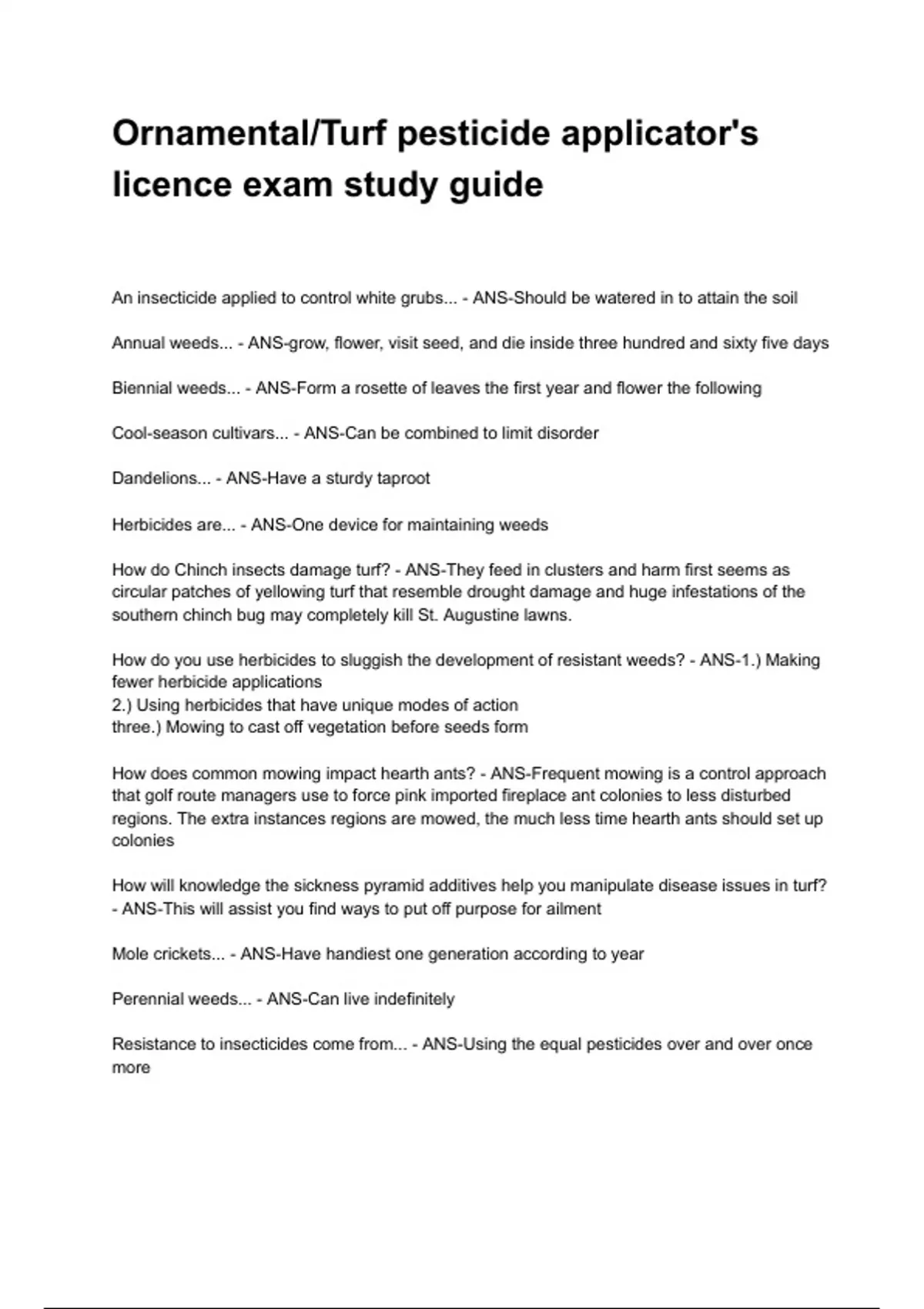 Ornamental/Turf pesticide applicator's licence exam study guide NEWEST 2025/2026 ACTUAL EXAM COMPLETE QUESTIONS AND CORRECT DETAILED ANSWERS (VERIFIED ANSWERS) |ALREADY GRADED A+||BRAND NEW!!