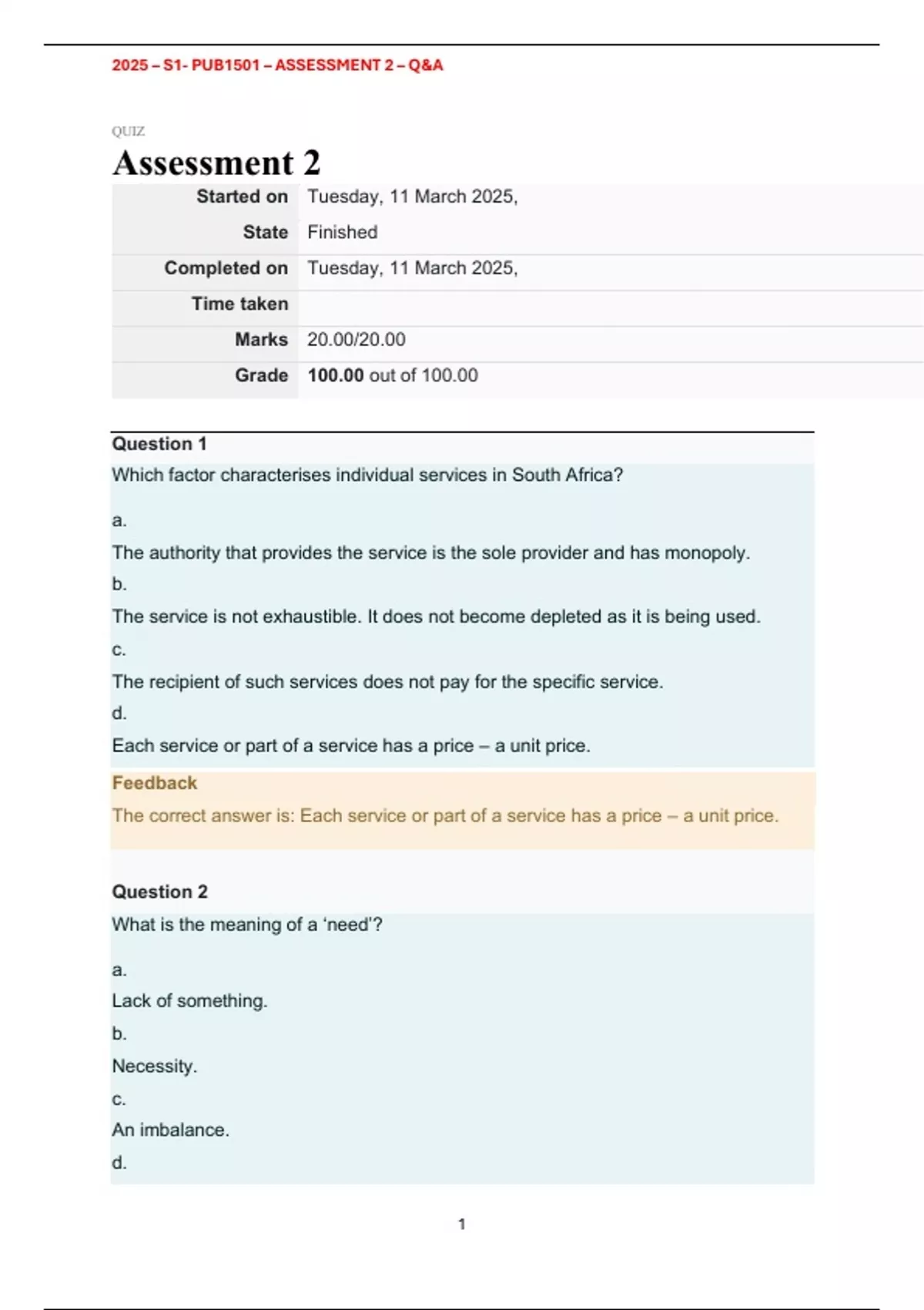 2025 – S1- PUB1501 – ASSESSMENT 2 – Q&A