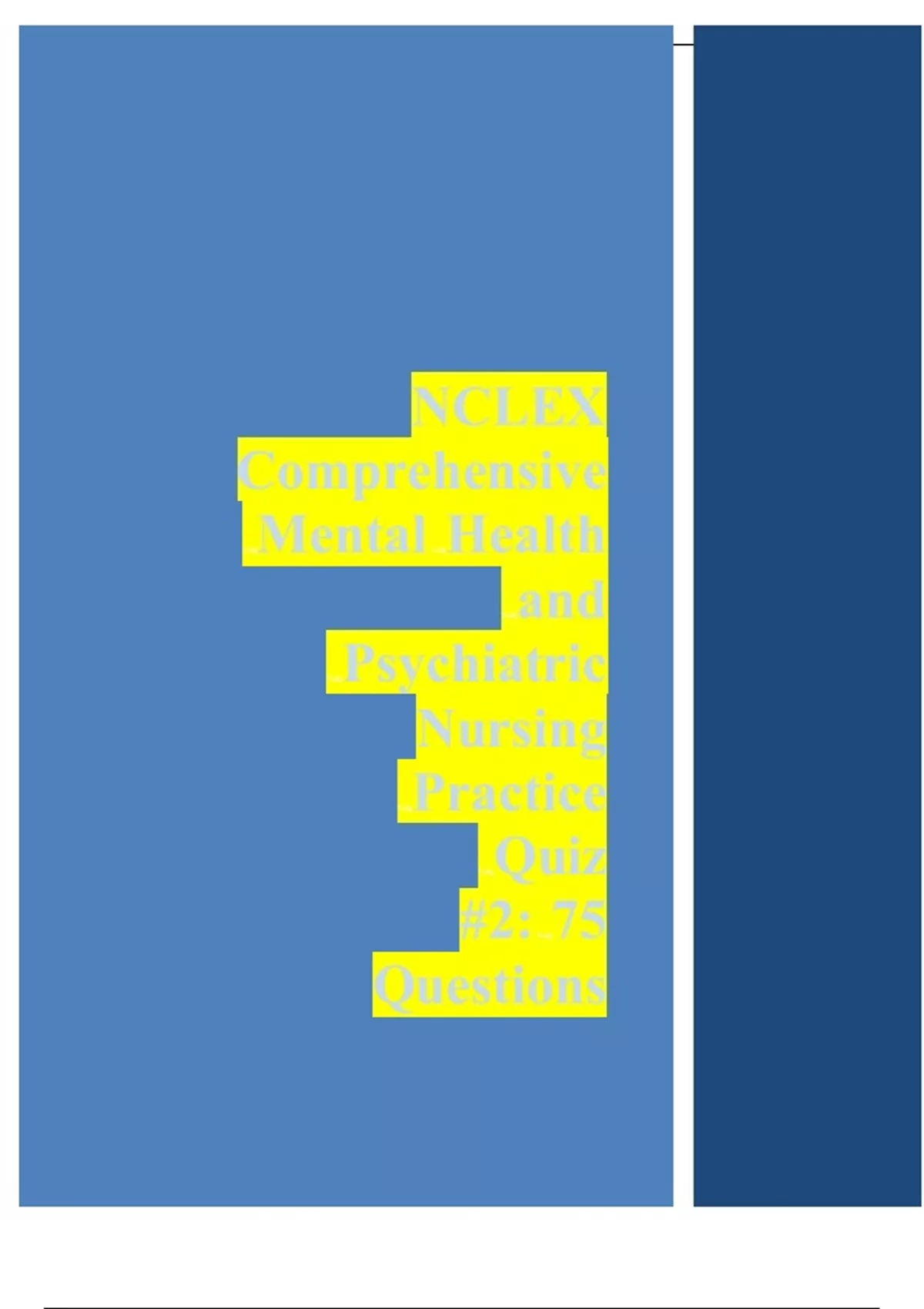 NCLEX Comprehensive Mental Health and Psychiatric Nursing Practice Quiz #2: 75 Questions and Answers||Latest Update 2025.