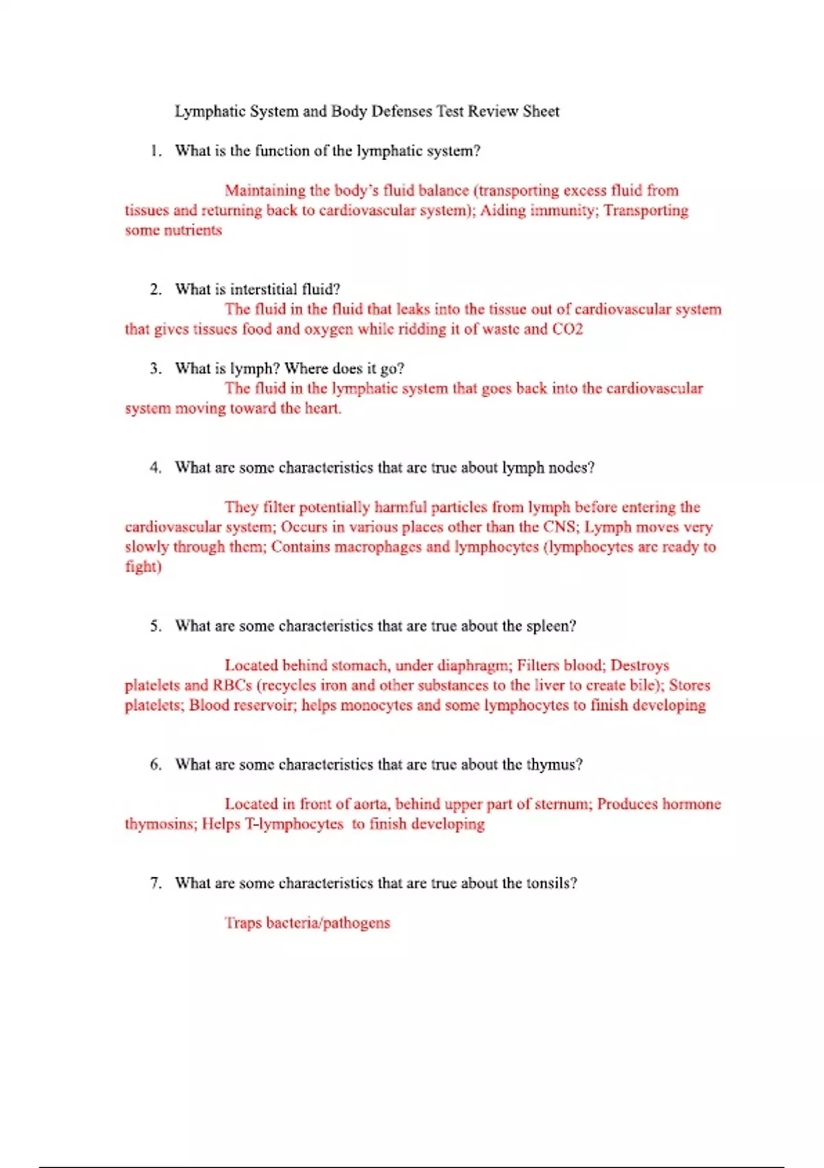Immune system test review sheet