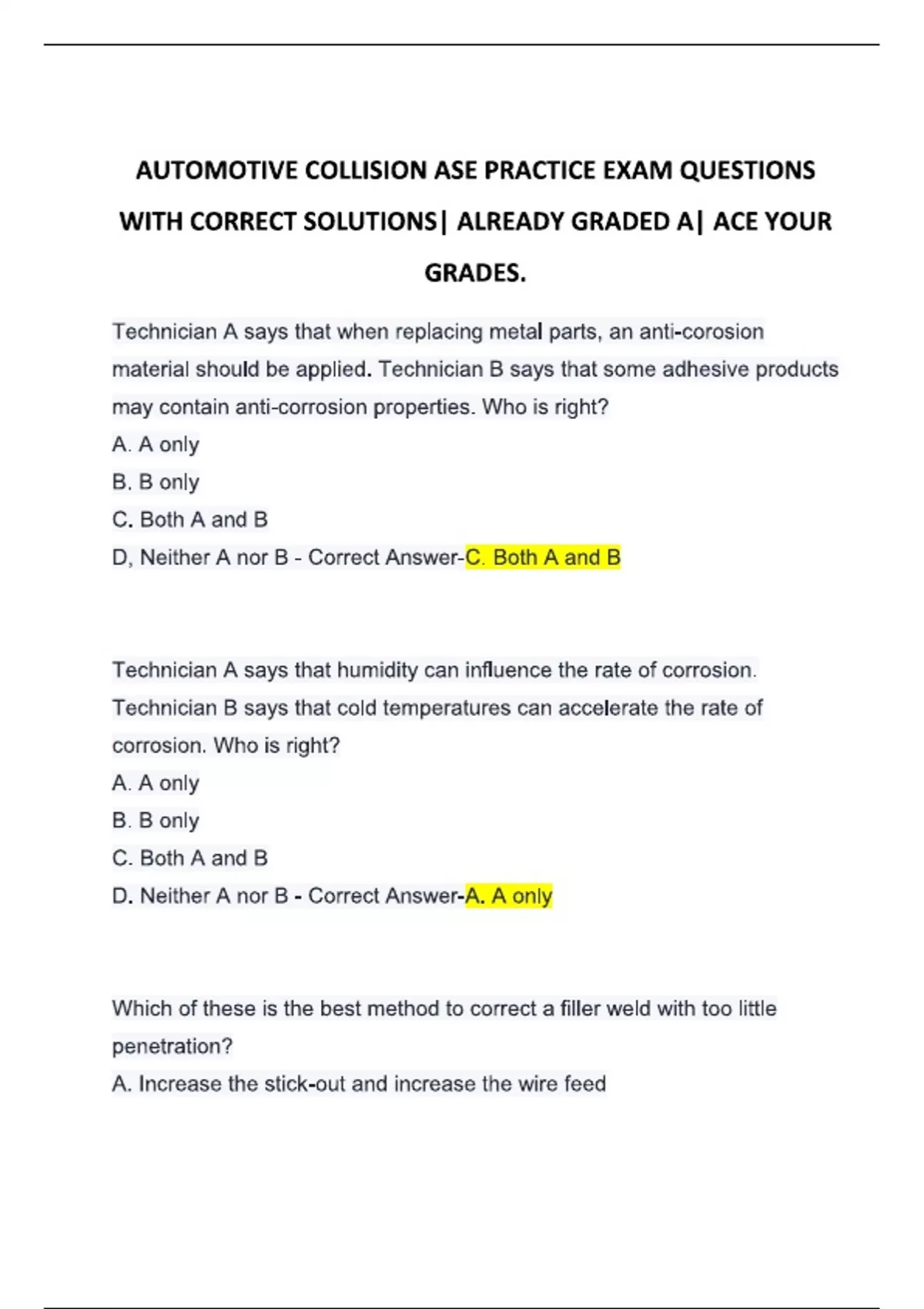 AUTOMOTIVE COLLISION ASE PRACTICE EXAM QUESTIONS AND ANSWERS WITH SOLUTIONS