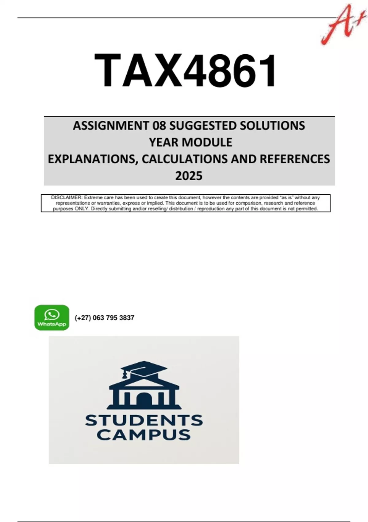 TAX4861 Assignment 8 (COMPLETE QUESTIONS & ANSWERS) YEAR MODULE 2025 - DUE 28 NOVEMBER 2025