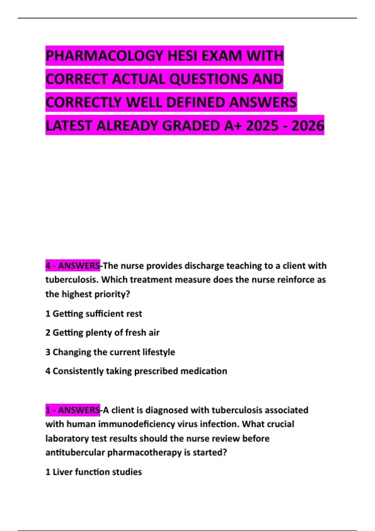 2 - ANSWERS-A client with tuberculosis is started on a
