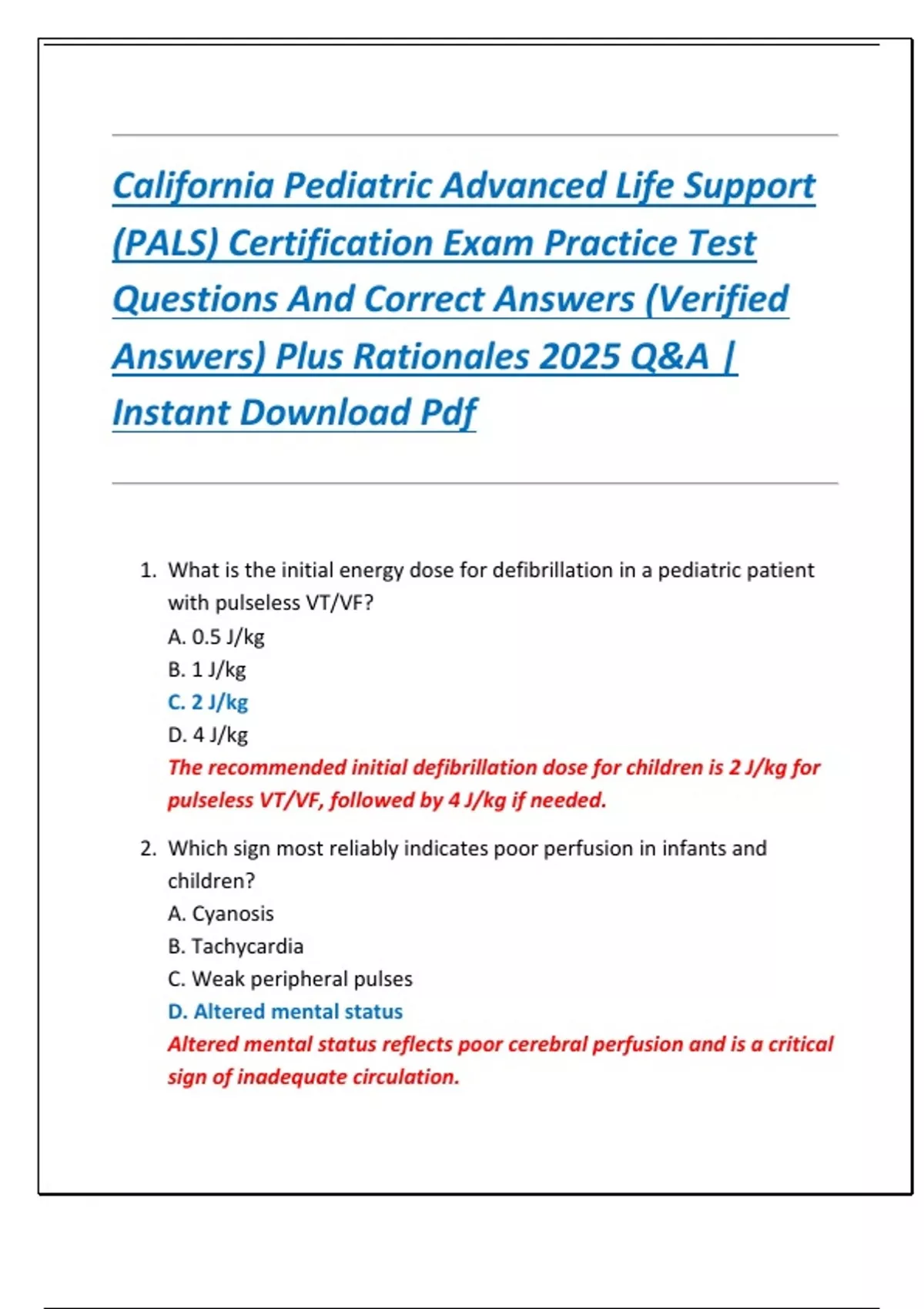 (PALS) Certification Exam Practice Test