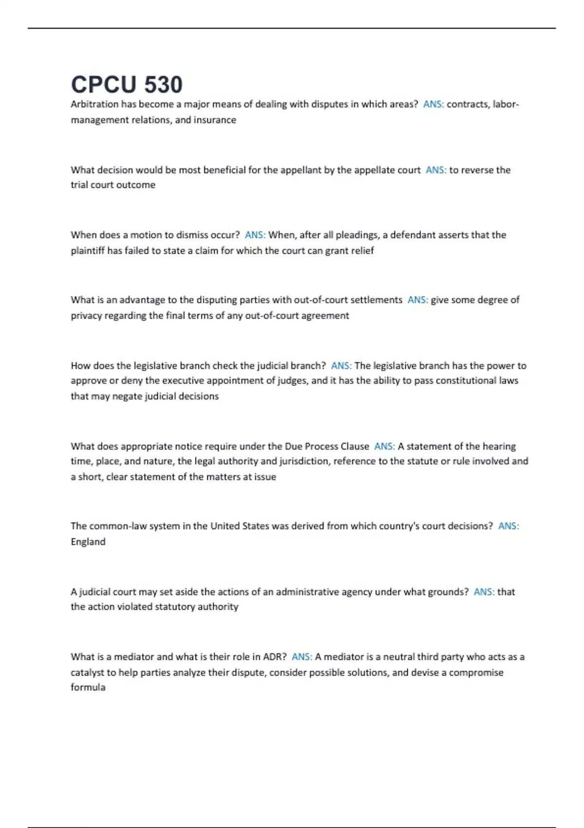 Arbitration has become a major means of dealing with disputes in which areas? ANS: contracts, labor-