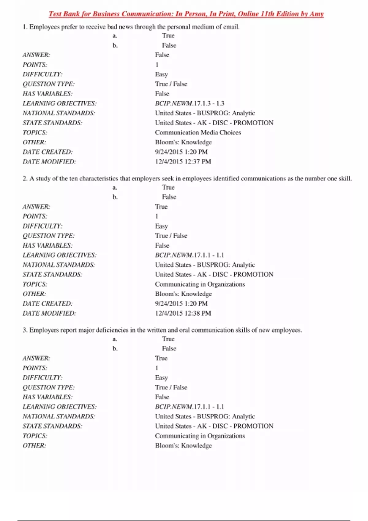 Business Communication and Character 11th Edition - Test Bank by Amy Newman