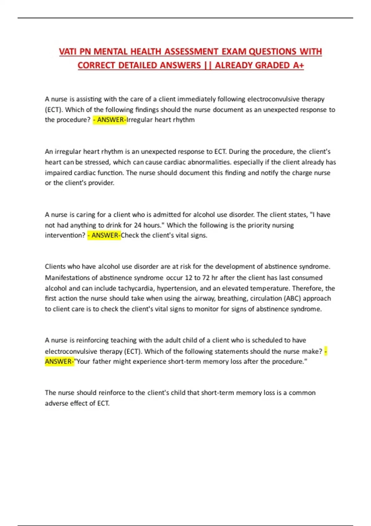 VATI PN MENTAL HEALTH ASSESSMENT EXAM QUESTIONS WITH CORRECT DETAILED ANSWERS || ALREADY GRADED A+