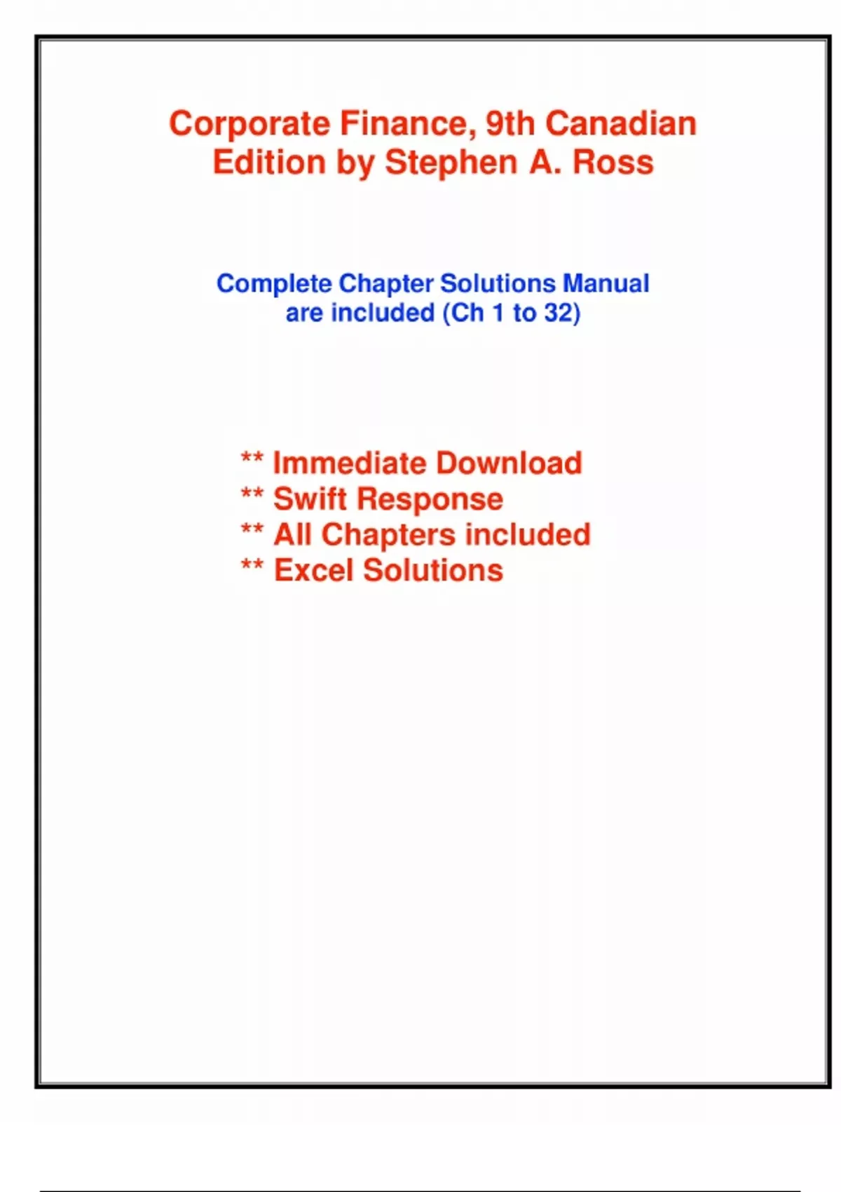Corporate Finance, 9th Edition - Solution Manual by Stephen A. Ross, All Chapters