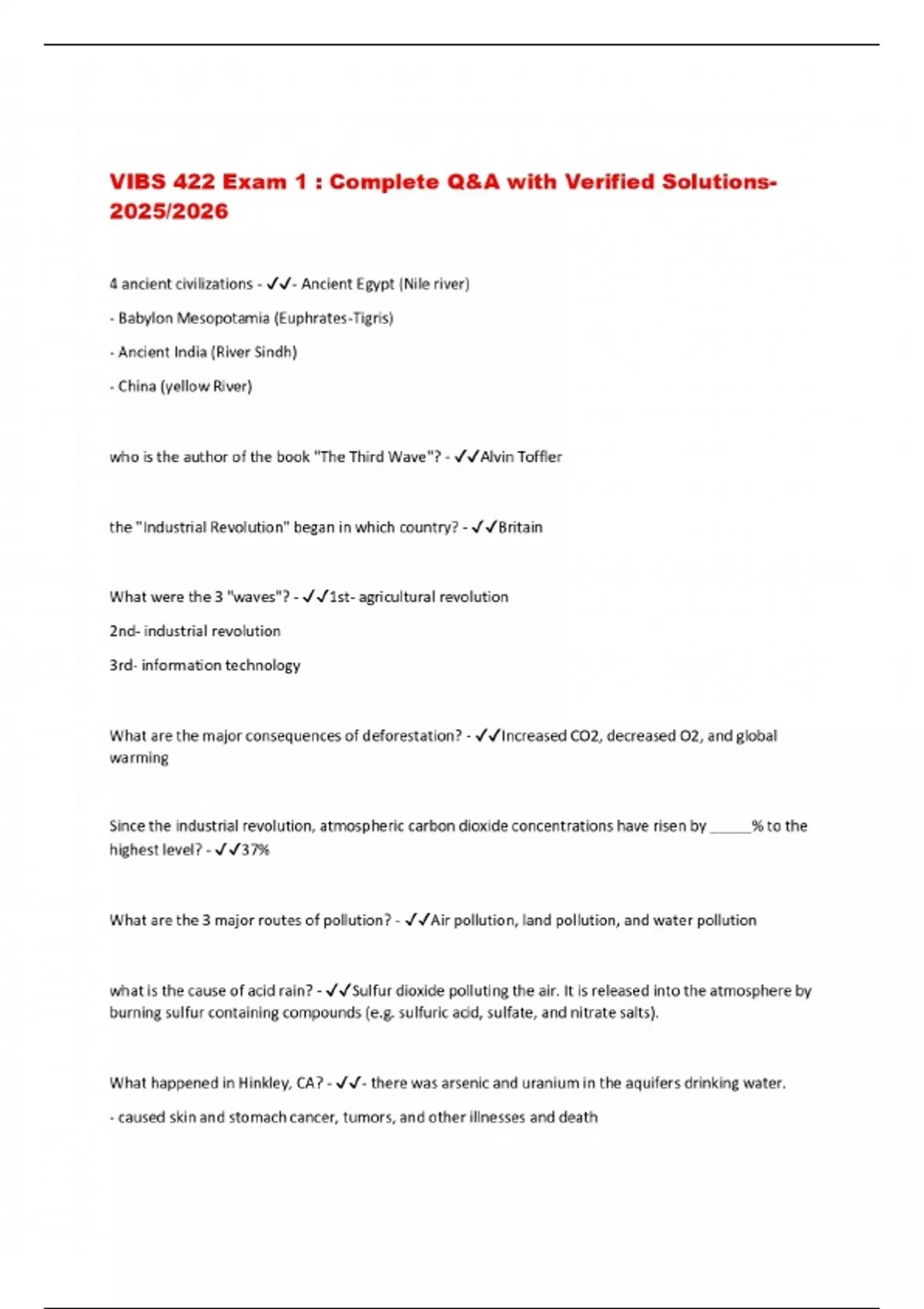 VIBS 422 Exam 1 : Complete Q&A with Verified Solutions 2025/2026