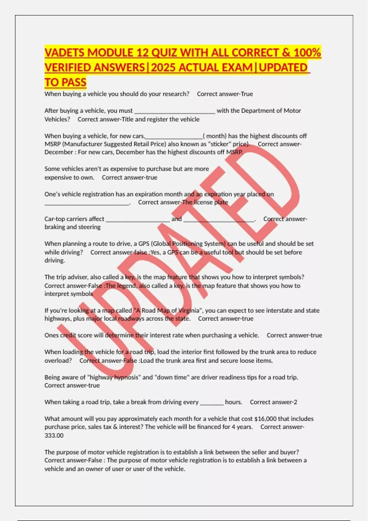 VADETS MODULE 12 QUIZ WITH ALL CORRECT & 100%