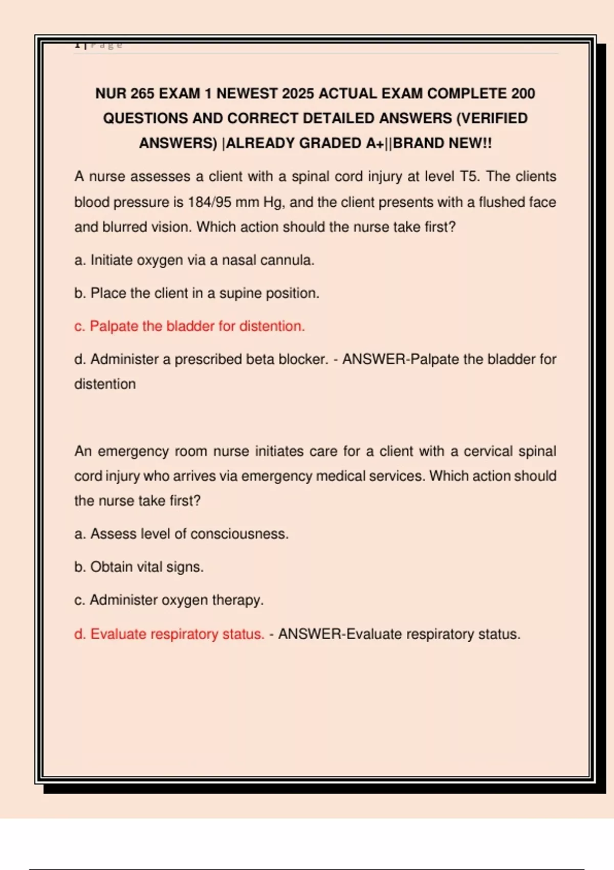 NUR 265 EXAM 1 NEWEST 2025 ACTUAL EXAM COMPLETE 200