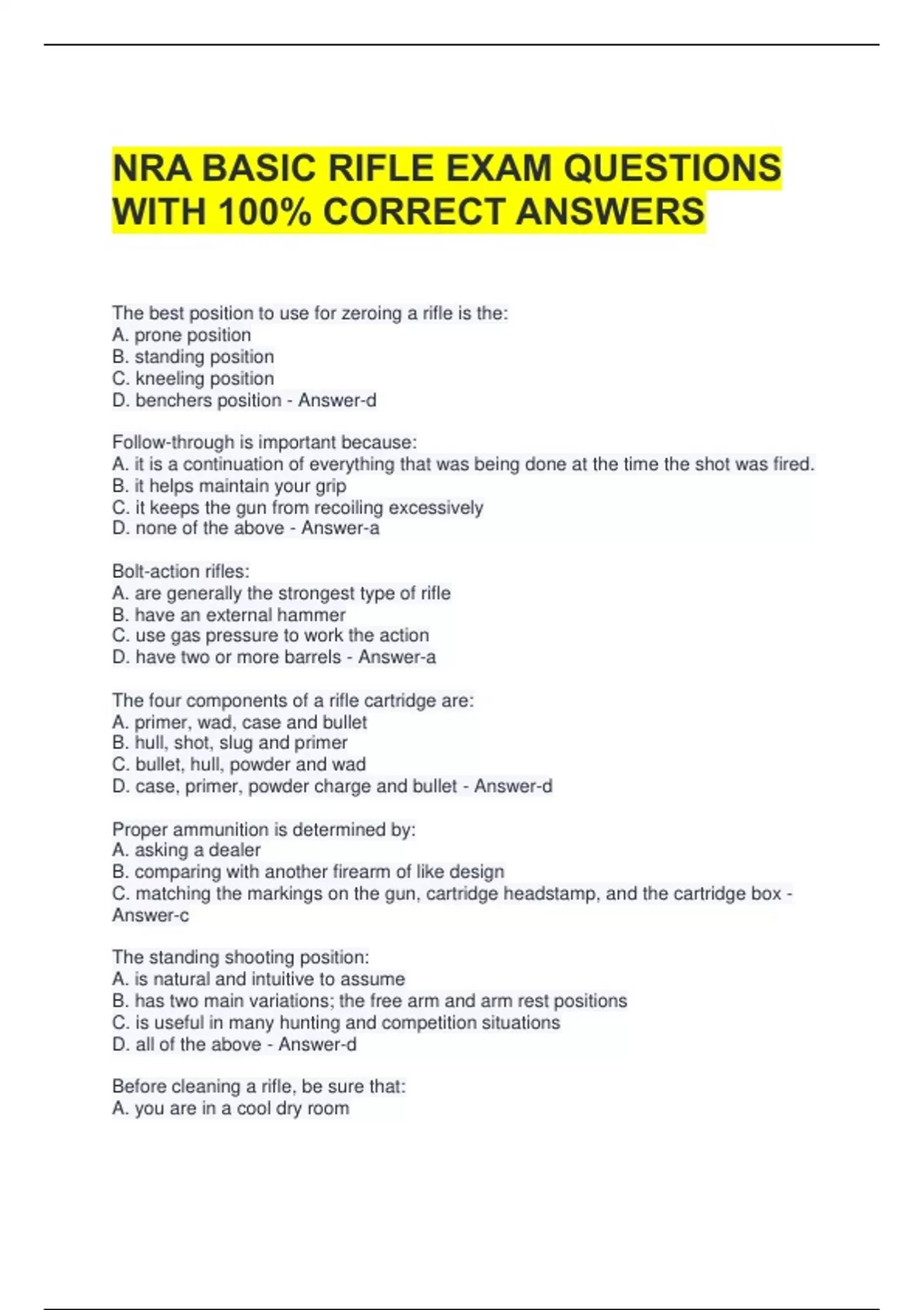 NRA BASIC RIFLE EXAM QUESTIONS WITH 100% CORRECT ANSWERS