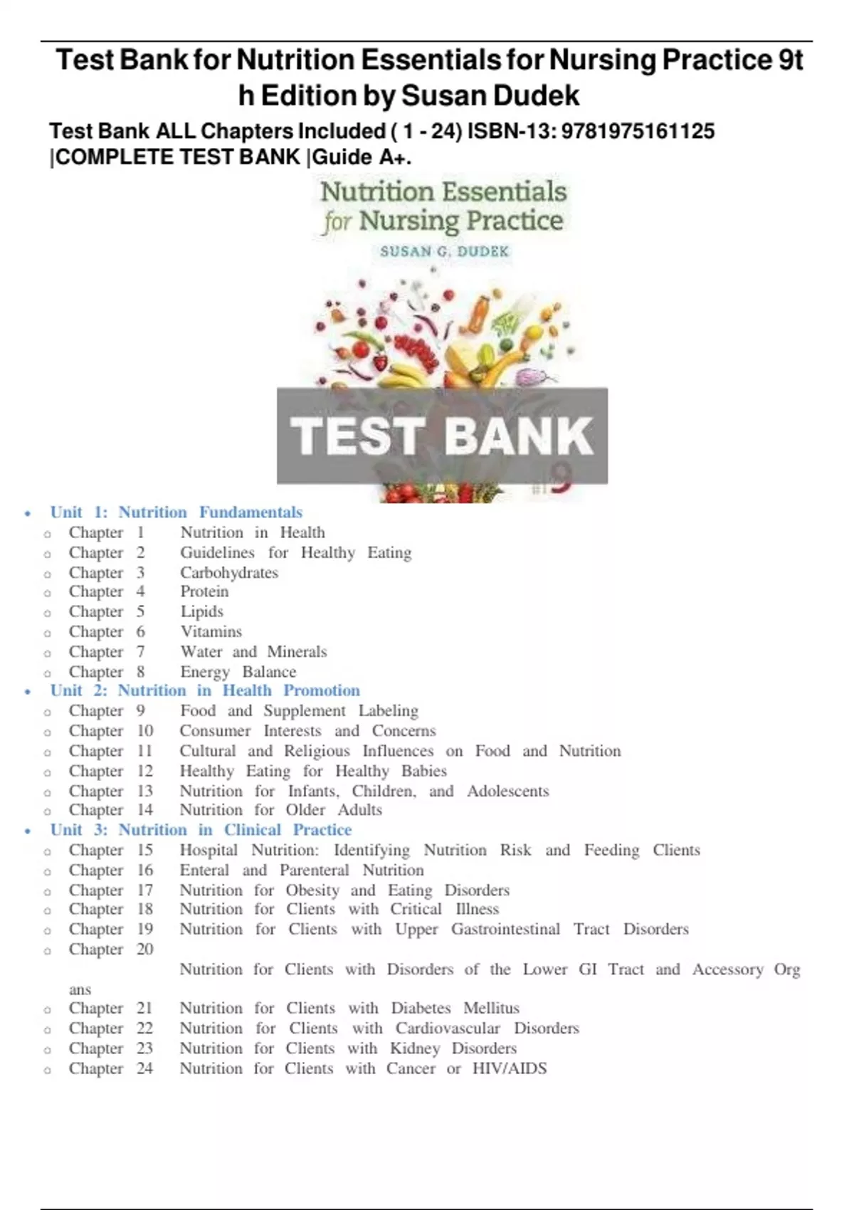 Test Bank ALL Chapters Included ( 1 - 24) ISBN-13: 9781975161125