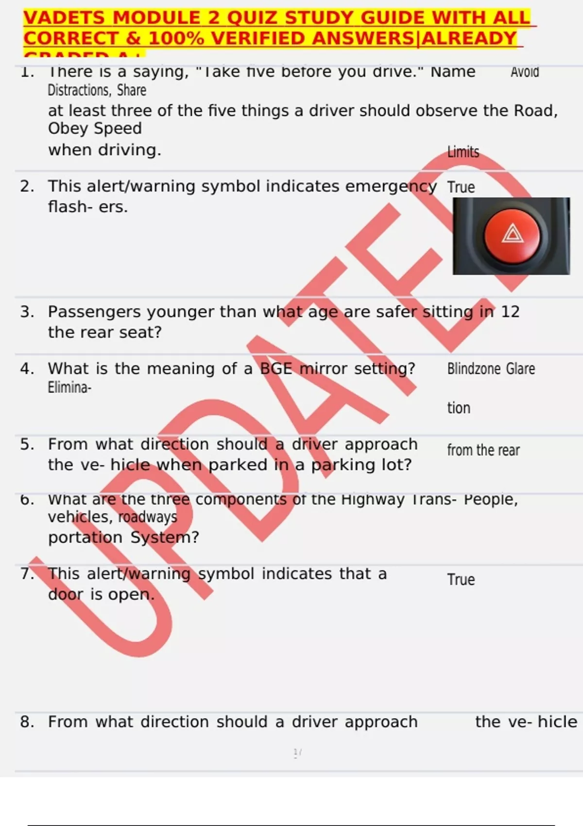 , VADETS MODULE 2 QUIZ STUDY GUIDE WITH ALL