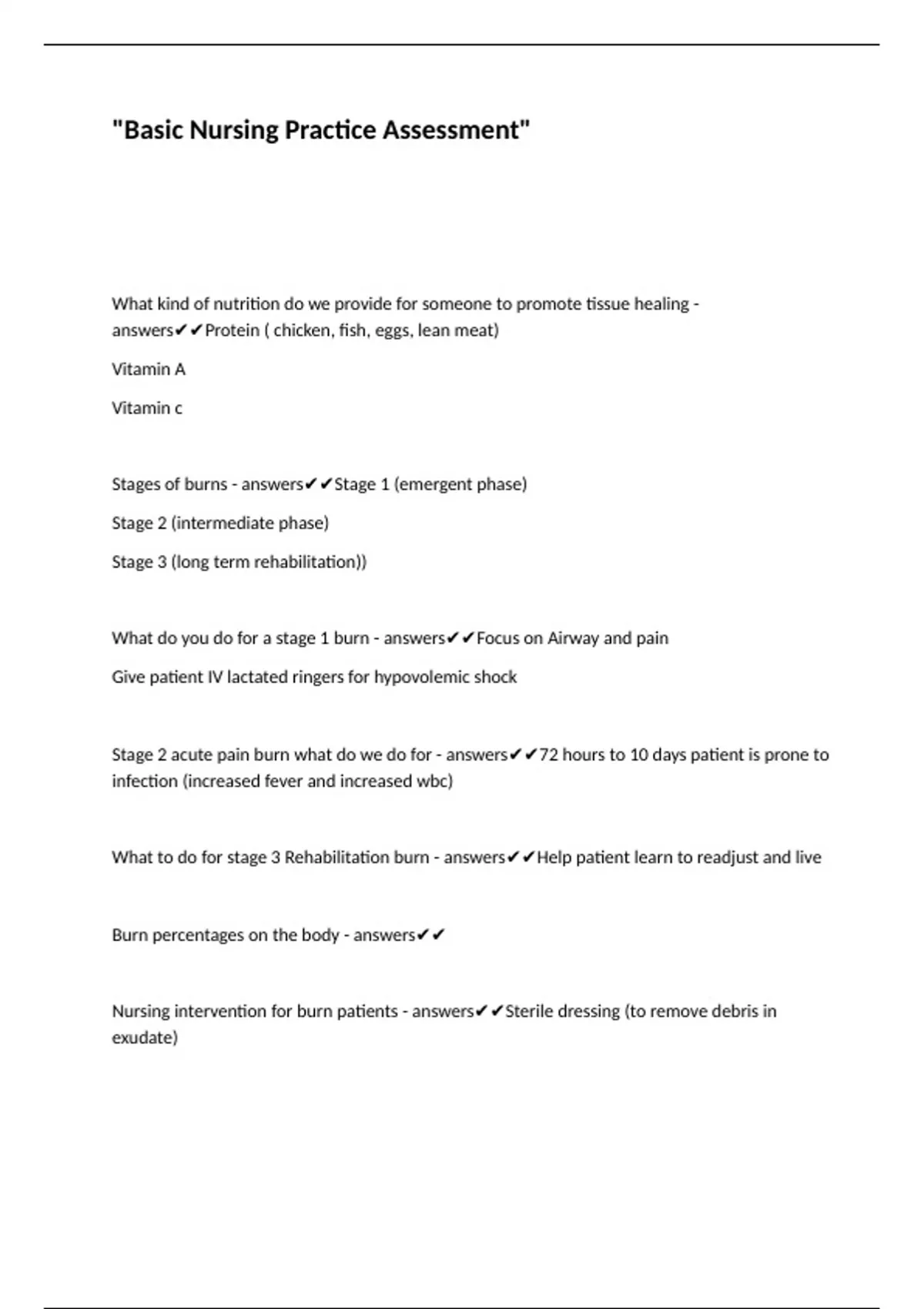 Burn percentages on the body - answers✔✔