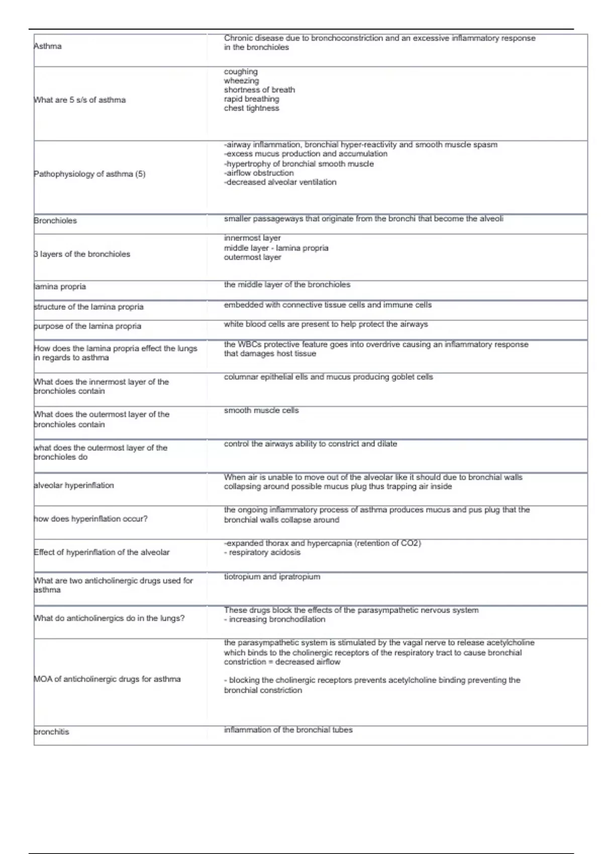 What do anticholinergics do in the lungs? - increasing bronchodilation