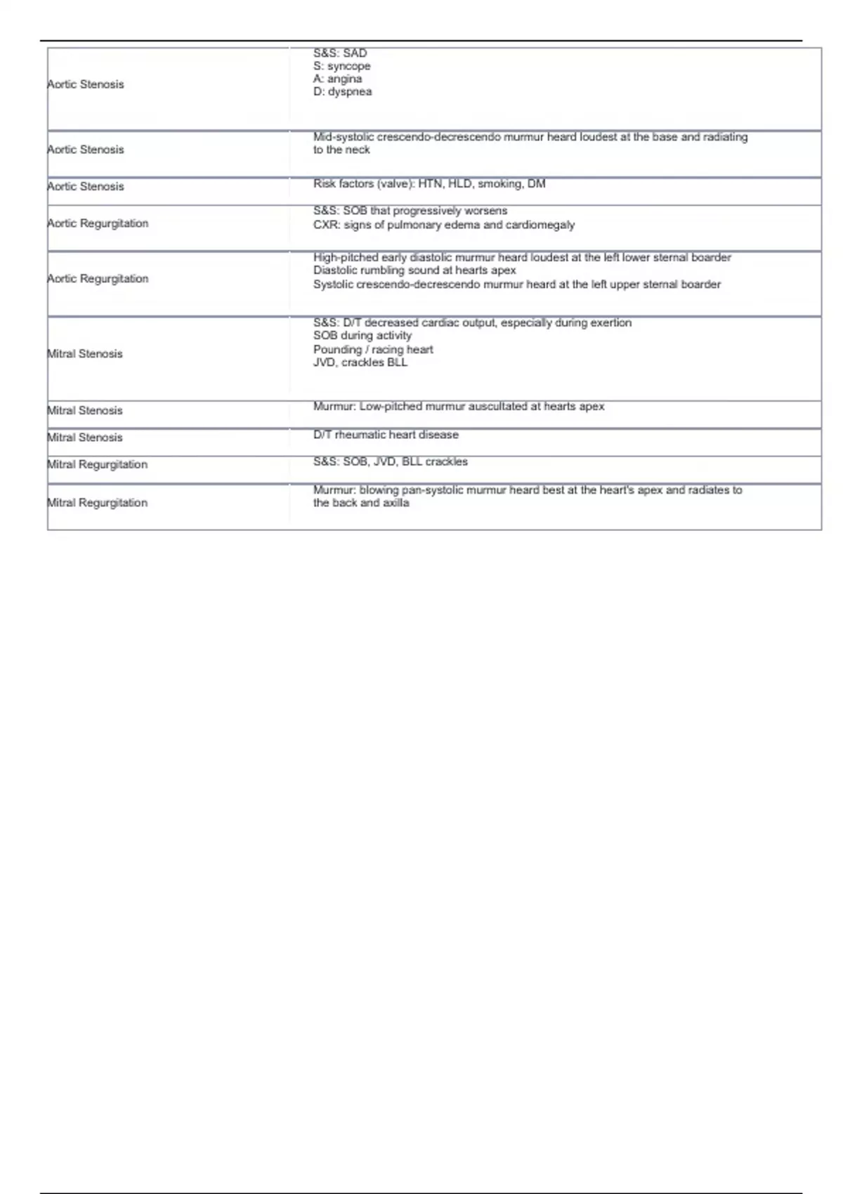 Aortic Stenosis Risk factors (valve): HTN, HLD, smoking, DM